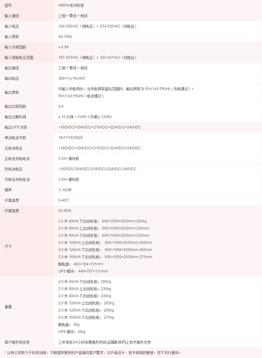 3A3 Pro UPS一個UPS模塊體積為440×700×131mm(3U),一個標(biāo)準(zhǔn)2米高的UPS機(jī)柜最多可以安裝10個UPS模塊,總?cè)萘窟_(dá)到150KVA,而且配電盤也含在其中,再配上與UPS機(jī)柜一般大小的電池柜,便可組成完整的UPS供電系統(tǒng)。由于UPS機(jī)柜和電池柜都采用標(biāo)準(zhǔn)機(jī)柜,與大多數(shù)機(jī)房的負(fù)載設(shè)備機(jī)柜一致,因此可以與負(fù)載并排放置而無需專用的UPS配電房,不僅美觀而且能為客戶最大限度地節(jié)省安裝空間。